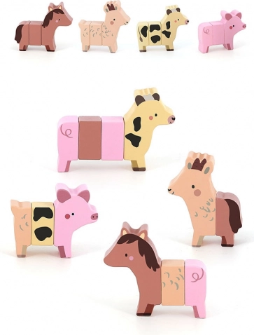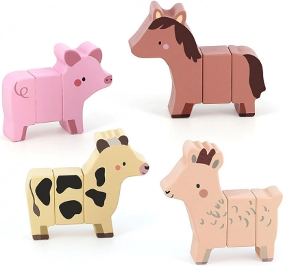 Wie sähe ein Pferd aus, das mit einem Schwein gekreuzt ist? Oder eine Ziege mit einem Pferd? Dieses lustige Holz-Magnetspielzeug ermöglicht es Kindern, ihre eigenen Tiere zu kreieren, während es freies Spiel fördert und die Kreativität entwickelt. Beim Zusammenbauen können Kinder Geschichten erfinden und sich mit verschiedenen Tieren vertraut machen.