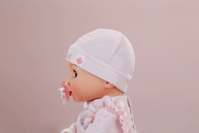 Beim Trinken aus dem Fläschchen oder mit dem Schnuller bewegt sie den Mund, öffnet und schließt die Augen und gibt niedliche Geräusche von sich – fast wie ein echtes Baby.