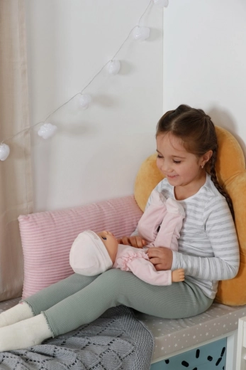Die angenehm nachgiebige Konstruktion ist ideal zum Umarmen und für den Alltagsspielspaß. Kinder können die Puppe leicht halten, tragen und zum Schlafen hinlegen.