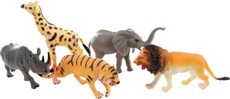 Entdecken Sie die Schönheit der Wildnis mit diesem Set aus fünf Kunststoff-Wildtieren, darunter Löwe, Giraffe, Elefant, Tiger und Nashorn. Ideal für Kinder ab 3 Jahren, fördert Kreativität und Lernen.