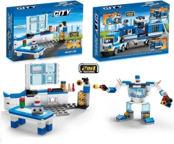 Polizei-Bausatz 8-in-1 – Fahrzeuge, Gebäude und Hubschrauber (98–118 Teile)