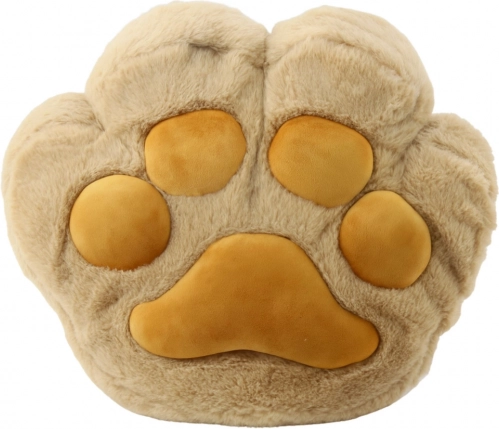 Plüschkissen Katzenpfote mit Handtasche und versteckter Decke. Weiches, wärmendes und praktisches Accessoire für Entspannung und Dekoration. Beige, 40 cm.