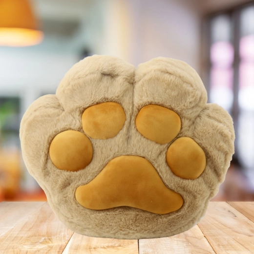 Niedliches und weiches Kissen in Form einer Katzenpfote mit integrierter Handtasche und versteckter Decke bietet maximalen Komfort und wohlige Wärme. Ideal zum Entspannen, Lesen und für gemütliche Filmabende, in beiger Farbe mit Karamell-Details und angenehm plüschiger Oberfläche.