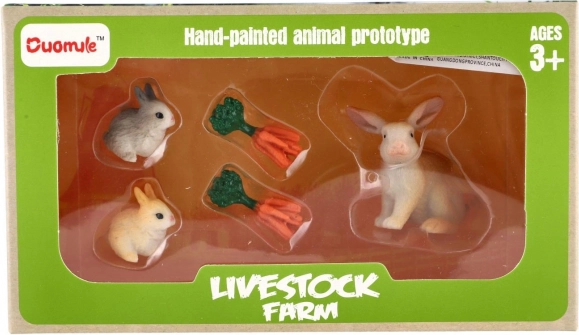 Die Kaninchen sind kompakt, liegen gut in der Hand und passen perfekt in Puppenhäuser oder thematische Bauernhöfe. Die praktische Box erleichtert Aufbewahrung und Transport.