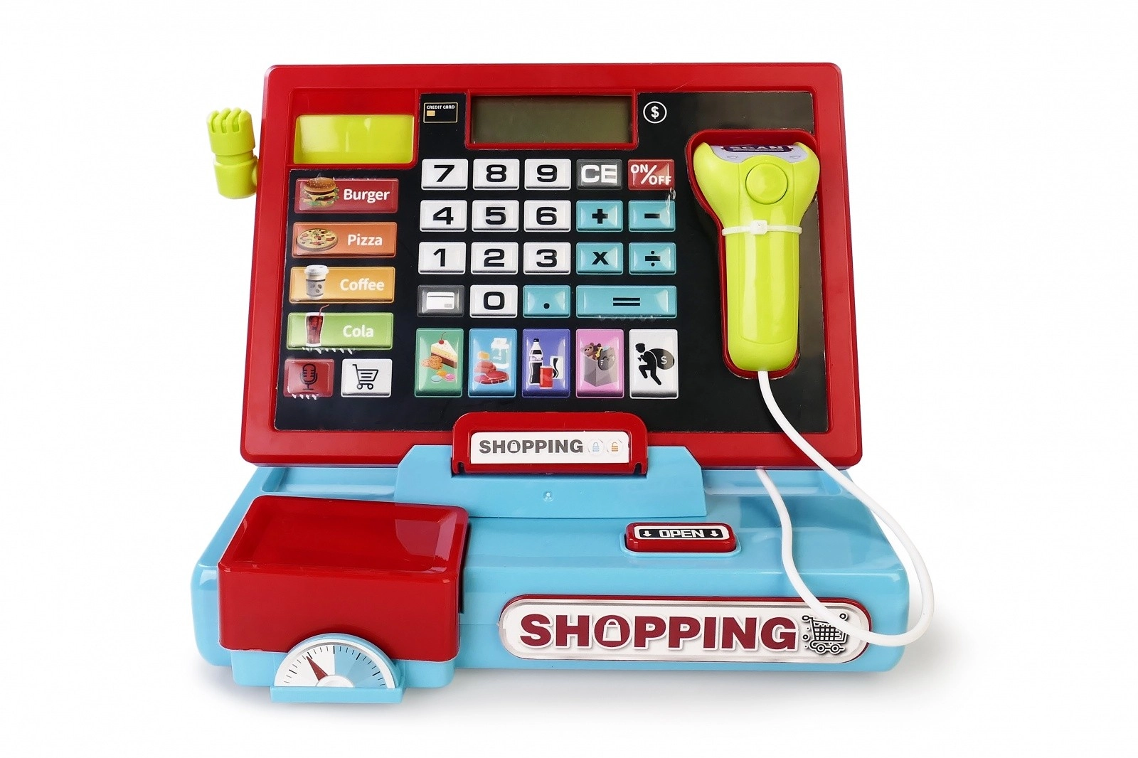 Diese interaktive Kasse ist ideal für kleine Verkäuferinnen und Verkäufer. Dank Scanner, Waage und realistischen Geräuschen tauchen Kinder leicht ins Spiel ein und fördern finanzielle Bildung, Logik und Kommunikationsfähigkeiten. Der integrierte Taschenrechner hilft beim Trainieren des Rechnens und des Umgangs mit Zahlen.