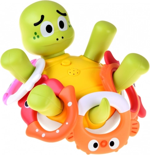 Setzt man das süße Schildkröten-Baby ins Wasser, beginnt es feine Wasserstrahlen zu sprühen, die Kinder faszinieren und ihre Wassergewöhnung fördern. Enthalten sind auswechselbare, farbige Scheiben mit verschiedenen Mustern, die das Aussehen des Spielzeugs verändern und die Aufmerksamkeit der Kinder beim Baden aufrechterhalten.