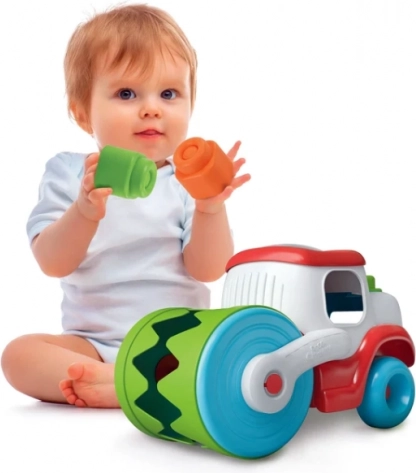 Die Sensorik-Rolle Clemmy von CLEMENTONI ist ein weicher „Baustein-Schlucker“, der das taktile Empfinden, die Feinmotorik und die kognitiven Fähigkeiten von Kindern im Alter von 6 bis 36 Monaten fördert. Weiche, sichere und abwaschbare Bausteine werden durch das Fenster eingeworfen, zu Türmchen gestapelt und aus dem hinteren Behälter wieder entnommen – Spaß und Lernen in einem.
