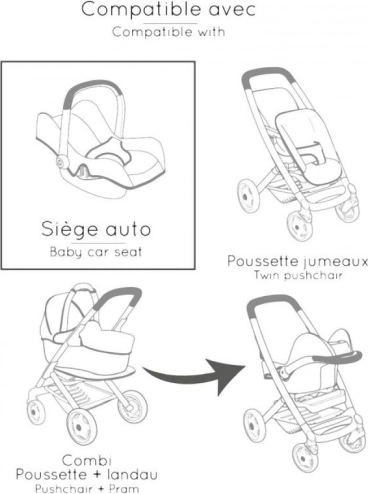 3-in-1 Puppenset (Autositz / Schaukel / hoher Hochstuhl)