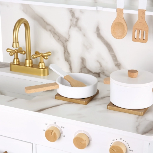 Holzküche für Kinder – Weiß mit Marmor-Design