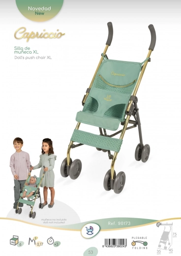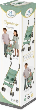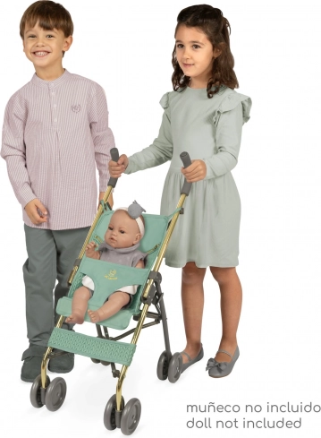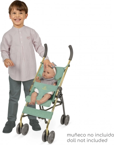 Stilvoller und praktischer faltbarer Puppenbuggy aus der CAPRICCIO-Kollektion in modernem mintgrün bietet einfache Handhabung, eine stabile Metallkonstruktion und einen Dreipunktgurt für die sichere Fixierung der Puppe. Dank der kompakten Abmessungen ideal für Reisen und den Innenbereich.