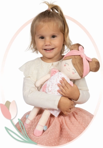 Die Puppe ist auf einfache Pflege ausgelegt – sie kann von Hand bei 30 °C gewaschen werden. Sie wird in einer Schutzhülle geliefert, die das Spielzeug während des Transports schützt. Der stilvolle Look der Tulipe-Kollektion verbindet Tulpenmotive mit zarten Tönen für einen wahrhaft eleganten und zeitlosen Auftritt.