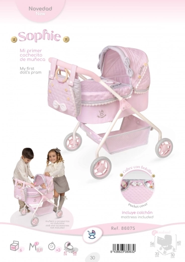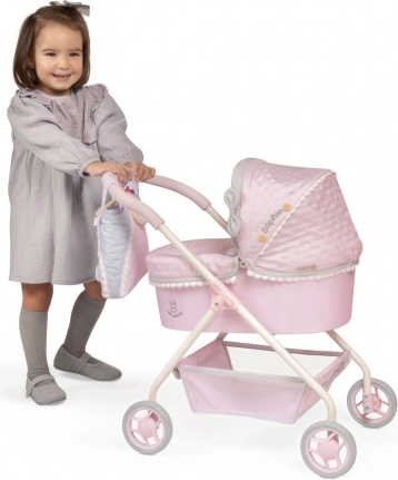 Der bezaubernde Puppenwagen aus der Sophie-Kollektion wurde mit Fokus auf Komfort, Sicherheit und einfache Handhabung entwickelt. Das hellrosa Design wird durch dezente graue und weiße Details ergänzt, die den romantischen Stil unterstreichen. Dank des niedrigen Griffs und der leichten Konstruktion ist er besonders für die Kleinsten geeignet.