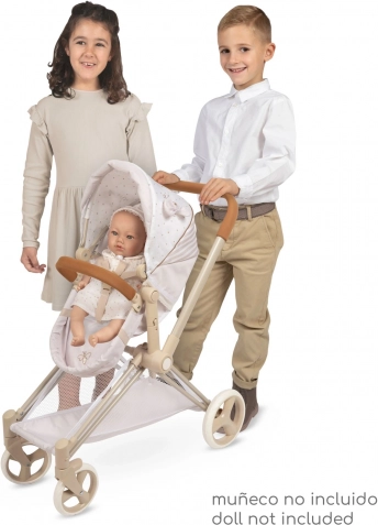 Der Wagen ist klappbar, benötigt zusammengeklappt nur wenig Platz und ist praktisch für den Transport. Die abnehmbare Tragewanne ermöglicht sicheres Tragen der Puppe, während die verstellbare Haube, Dreipunktgurte und schwenkbare Vorderräder für eine komfortable, sanfte Fahrt sorgen. Inklusive stilvoller Tasche und unterem Ablagekorb für alles Notwendige.