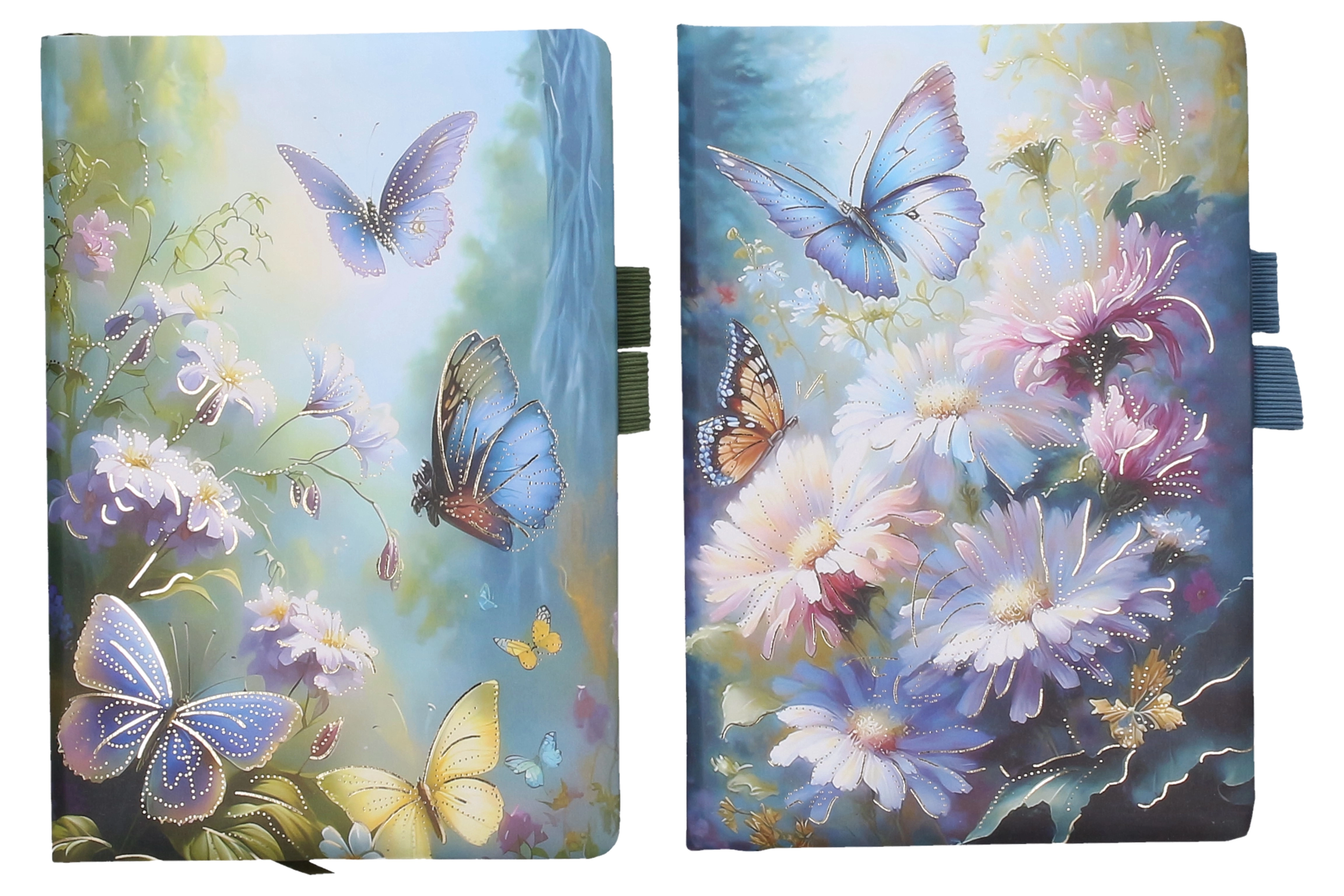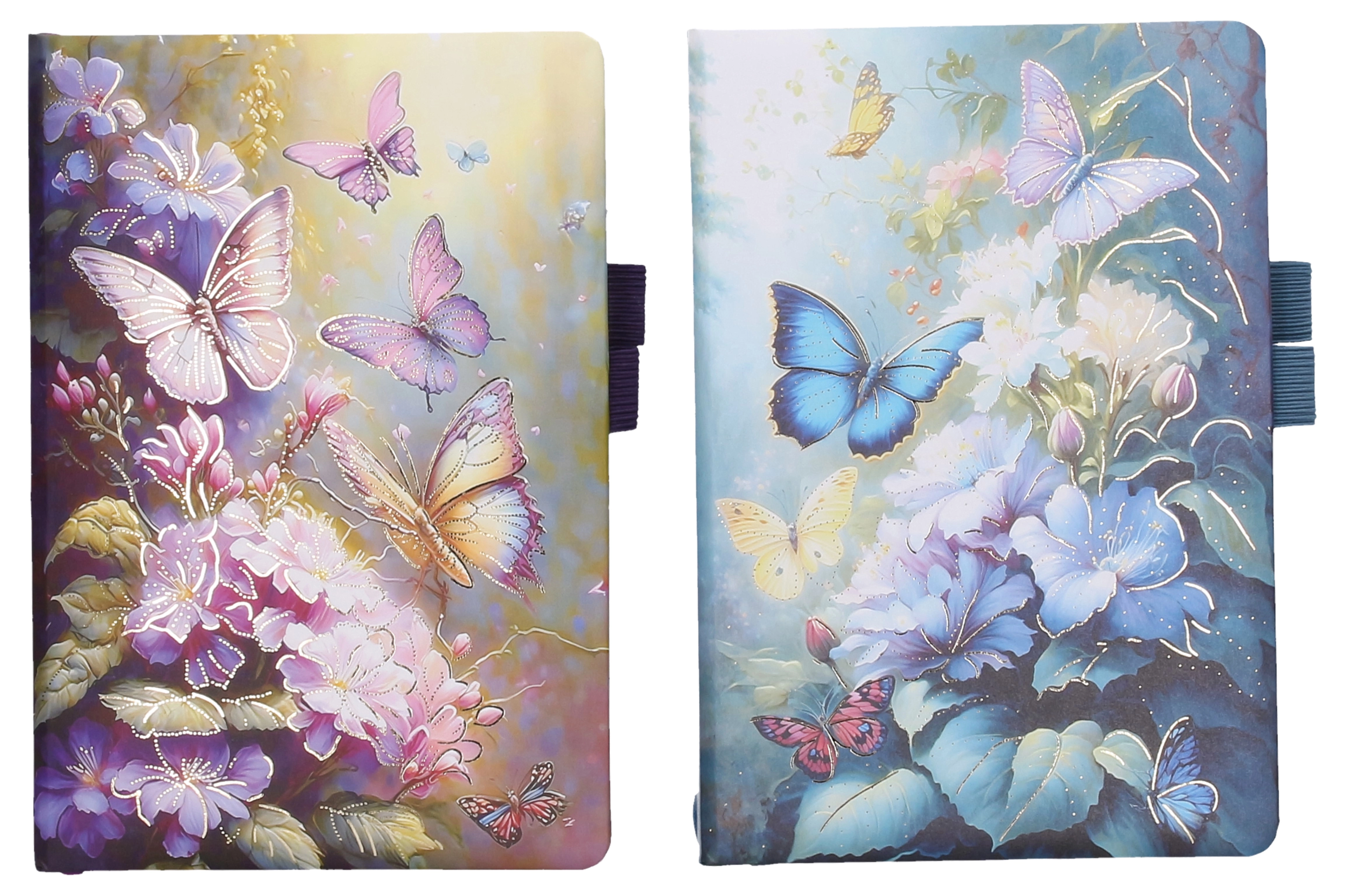 Stilvoller linierter Notizblock mit Schmetterlingsmotiv im praktischen Format 14 × 21 cm bietet 80 linierte Seiten für Ihre Notizen, Ideen und die tägliche Planung. Es stehen 4 attraktive Designvarianten zur Verfügung, die Liebhaber von Natur und Ästhetik begeistern.