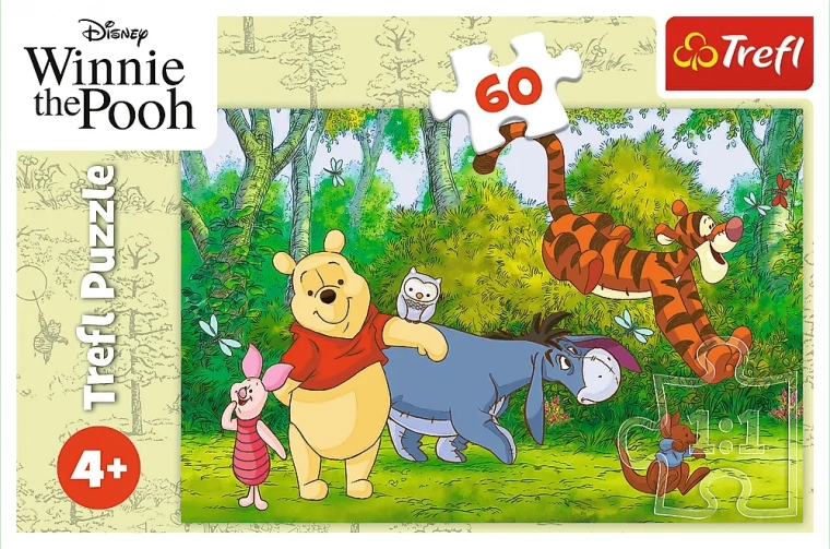 Machen Sie Kindern eine Freude mit dem farbenfrohen Motiv aus der beliebten Welt von WINNIE PUUH. Das TREFL-Puzzle mit 60 Teilen ist eine hervorragende Wahl für die ersten etwas anspruchsvolleren Puzzles – es bietet Spaß und Lernen in einem und unterstützt die Konzentration.