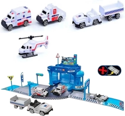 Das Set enthält eine zusammenbaubare Stationsgebäude, ein Polizeiauto, einen kleinen Polizeihubschrauber, ein Flughafen-Treppenfahrzeug, ein Fahrzeug mit Gepäckanhänger, Verkehrszeichen, Elemente der Zufahrtsstraße und eine Folien-Spielmatte 78 × 58 cm. Kinder entwickeln Feinmotorik, Hand-Auge-Koordination und Fantasie.