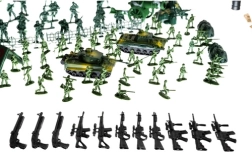 Großes Set mit bis zu 300 Teilen für kreative Militärszenarien: Soldaten in verschiedenen Farben, Panzer, Flugzeuge, Geschütze, Gebäude und Zubehör. Robuste Plastikfiguren im Maßstab ca. 1:40, alles verpackt in einem praktischen Etui mit Reißverschluss und Tragegriff für einfaches Mitnehmen. Ein tolles Geschenk zur Förderung von Fantasie, Kreativität und strategischem Denken.