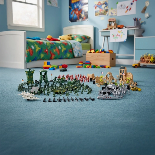 Bauen Sie Ihr eigenes Schlachtfeld und erschaffen Sie spannende Szenarien mit dem umfangreichen Set aus 300 Teilen. Enthalten sind Soldaten in vier Farben, Panzer, Flugzeuge, Geschütze, Gebäude, Barrikaden, Bäume und Fahnen – alles, was Kinder für ein realistisches Armee-Spiel benötigen. Sorgfältig geformte Figuren aus robustem Kunststoff halten intensives tägliches Spielen aus.