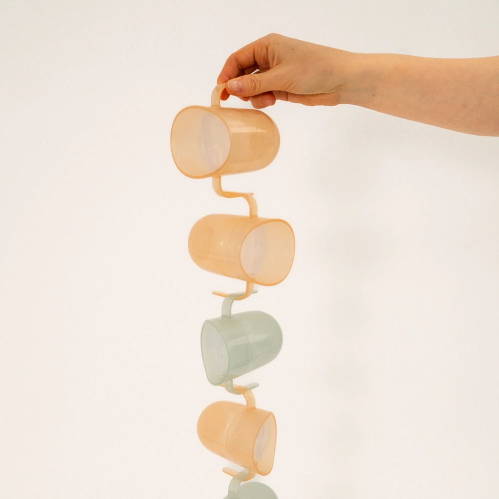Verlangsamter Durchfluss, transparente Wände, ausgeschnittener Rand, Möglichkeit der Nutzung als offener Becher