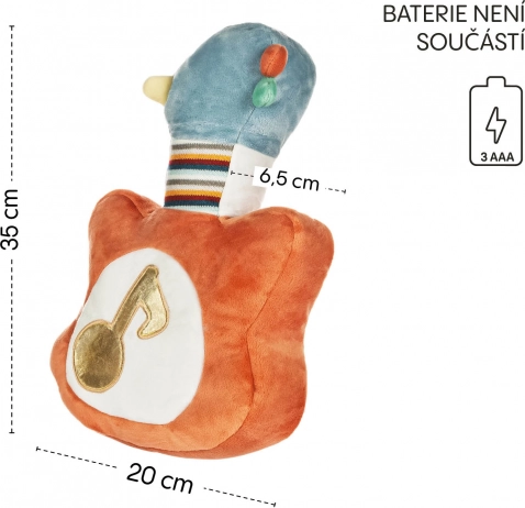 Leichtes Antippen startet eine Auswahl von 16 fröhlichen Melodien, die das Rhythmusgefühl fördern und spielerisch zum Mitmachen motivieren.