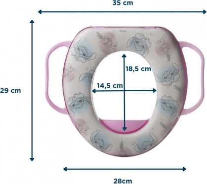 Gönnen Sie Kindern einen bequemen und sicheren Übergang auf die große Toilette mit der weichen WC-Reduktion mit Griffen LILO & STITCH. Gepolsterter Sitz, integrierte Griffe für Sicherheit und ein erhöhter Spritzschutzrand sorgen für Komfort und Hygiene. Einfache Montage auf den meisten Standard-WCs und spielerisches Design motivieren Kinder zur Selbstständigkeit.