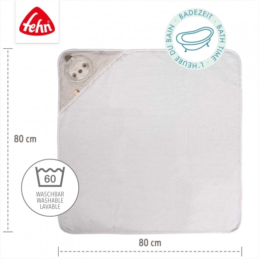 Suchen Sie ein zuverlässiges und bequemes Handtuch für die Kleinsten? Dieses Kapuzenhandtuch mit einer plüschigen Faultier-Applikation ist die perfekte Wahl für den täglichen Gebrauch. Flauschiges Frottee in zarten Farben bietet angenehme Wärme und Komfort, während die Kapuze das Köpfchen vor Auskühlen schützt. Das Handtuch ist beständig gegen häufiges Waschen – es behält Weichheit, Saugfähigkeit und seine schöne Optik.