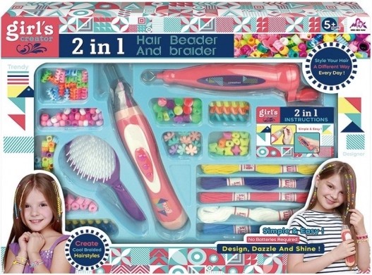 Entdecken Sie ein unterhaltsames Set zur Frisurengestaltung, mit dem Kinder spielend leicht bunte und effektvolle Haarverzierungen zaubern. Einfache Anwendung, umfangreiche Ausstattung und sichere Ausführung machen es zum idealen Geschenk für kleine Modefans.