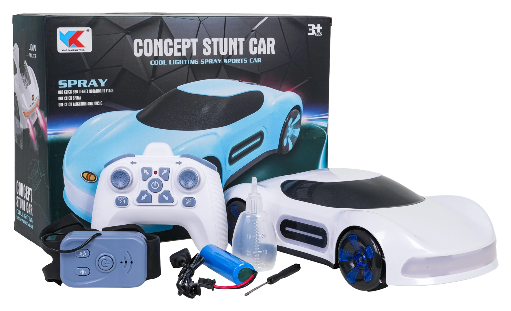 Das Auto lässt sich über die 2,4-GHz-Fernbedienung oder eine Armbanduhr für Gestensteuerung bedienen. Es fährt vorwärts/rückwärts, lenkt, bewegt sich seitwärts, driftet und führt 360°-Drehungen aus. Die hochwertige Verarbeitung aus robusten Materialien ist ideal für den täglichen Spielspaß.