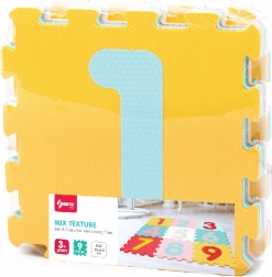 Das Set aus weichen Schaumstoffblöcken mit herausnehmbaren Zahlen ist ideal für Kinderzimmer und Spielecken. Die einzelnen Teile in der Größe 32 × 32 cm ergeben eine bequeme, sichere und leicht abwaschbare Fläche, die vor Kälte und kleinen Stürzen schützt. Dank der kontrastreichen Zahlen üben Kinder spielerisch das Erkennen von Ziffern sowie die Hand-Auge-Koordination.