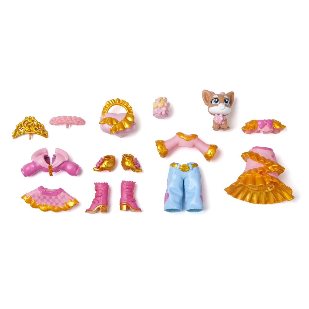 Das Deluxe-Set KookyLoos Taylor – Golden Gala ist wie gemacht für kleine Stylistinnen. Taylor liebt einen süßen und schicken Stil und ist bereit für jeden Anlass: einen Spaziergang im Park mit ihrem Hündchen, Shopping mit Freundinnen oder den festlichen Golden-Gala-Abend. Dank der drei Gesichtsausdrücke, die du mit nur einem Klick wechselst, passt du den Look ganz leicht an Stimmung und Make-up an.