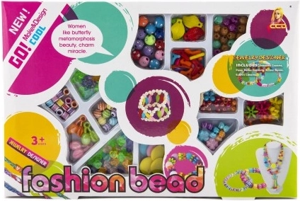 Entdecken Sie die Welt der Kreativität mit diesem Satz Kettenperlen Fashion Bead. Stellen Sie Ihren eigenen originellen Schmuck her, der als schönes Geschenk für die Mutter oder eine Freundin dienen kann. Das Set umfasst verschiedene farbige Plastikperlen, Schnüre, Anhänger und weitere Accessoires, die unbegrenzte Gestaltungsmöglichkeiten bieten.
