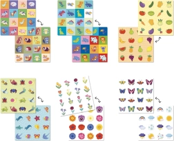 Sechs beidseitige Karten mit 192 Bildern (Tiere, Obst, Blumen, Meer und mehr) halten die Aufmerksamkeit der Kinder und bieten unzählige Spielkombinationen.