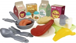 Pfanne, Teller, Besteck, „Lebensmittel“ und weiteres Zubehör