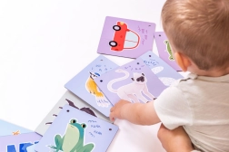 Das Hantieren mit den stabilen Karten unterstützt den Griff, die Auge-Hand-Koordination und die Konzentration beim gemeinsamen Spiel von Eltern und Kind.