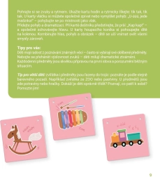 Im Alter von 12–30 Monaten wird die Sprachentwicklung am stärksten durch die Nachahmung von Lauten beeinflusst. Das Wiederholen von Lauten stärkt die Sprechmotorik (Lippen, Zunge, weicher Gaumen), hilft, Melodie und Tempo der Sprache wahrzunehmen, und legt die Grundlagen für den Wortschatz. Die Karten dienen somit als Brücke von Lauten zu den ersten Wörtern.