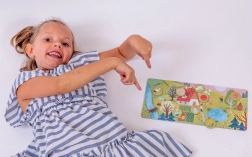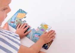 Extra große Puzzleteile aus 2 mm FSC-Karton sind griffig, lassen sich leicht zusammensetzen und halten dem täglichen Spiel stand – ganz ohne Plastik.