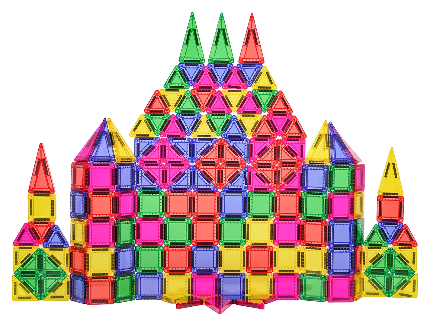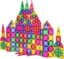Dieses umfangreich ausgestattete Set bietet 150 magnetische Teile in leuchtenden Farben, mit denen Kinder leicht Türme, Häuschen oder Burgen bauen. Transparente Paneele mit hochwertigen Magneten sorgen für eine feste Verbindung und Stabilität der Konstruktionen, sodass Kinder viele Stunden kreativen Spielens und die Förderung von STEM-Fähigkeiten genießen.