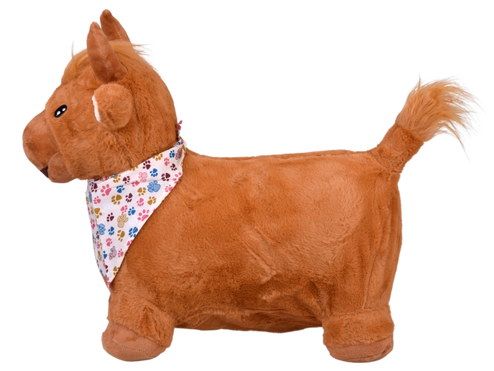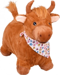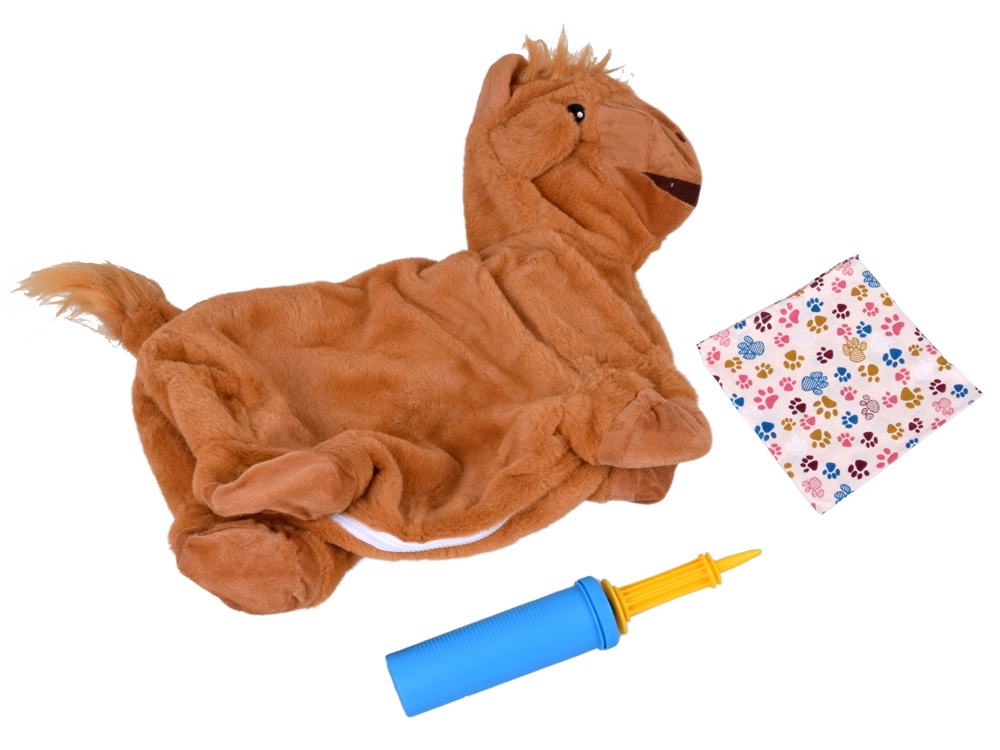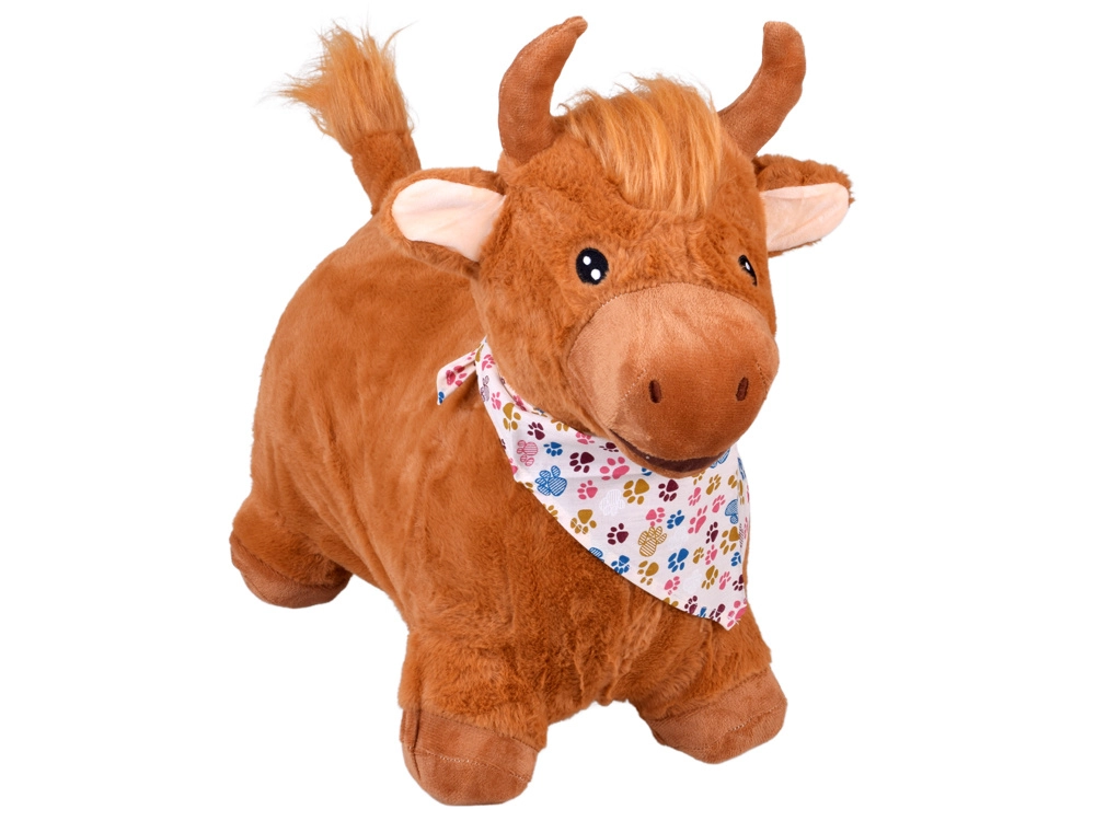 Der Hüpf-Stier ist angenehm weich im Griff, mit sicher aufgestickten Augen, kleinen Hörnern und einem flauschigen Schwanz. Einfach den Reißverschluss am Bauch öffnen, den Einsatz hineinlegen und mit der beiliegenden Pumpe aufpumpen – schon ist er im Handumdrehen bereit für Abenteuer. Das Halstuch mit verspieltem Pfotenmuster verleiht ihm einen originellen Look, den Kinder lieben.