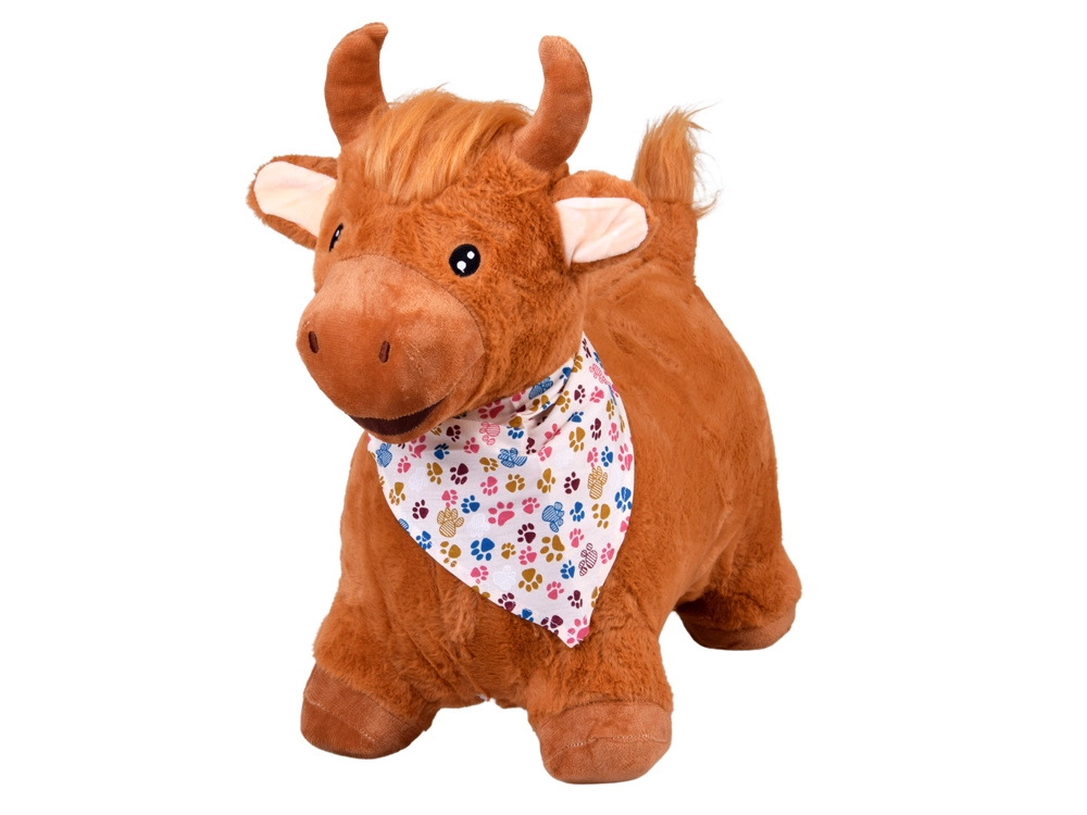 Das bunte Halstuch mit Pfoten-Print verleiht dem Stier einen einzigartigen Look, den Kinder sofort lieben.