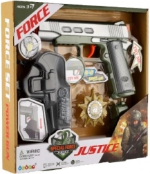Kreieren Sie Ihren eigenen wilden Westen zu Hause mit dem Set Teddies Pistole mit Zubehör Sheriff. Dieses Spielzeug ist so gestaltet, dass es die Fantasie anregt und es Kindern ermöglicht, Helden ihres eigenen Abenteuers zu werden.