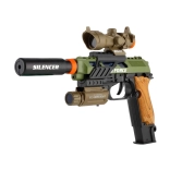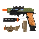 Diese Plastikpistole begeistert jeden kleinen Abenteurer. Dank realistischer Optik und Licht- und Soundeffekten bringt sie mehr Spaß und Action in jedes Spiel. Enthalten sind ein Zielgerät, Licht und ein Schalldämpfer, die den authentischen Eindruck beim Spielen unterstreichen.
