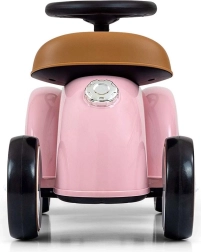 Das niedliche Laufrad im Retro-Stil verbindet ikonisches Aussehen mit durchdachten Details: verchromte Elemente, ROYCE-Emblem und ein bequem geformter Sitz in Braun. Dank des leichten Kunststoff-Chassis lässt es sich leicht tragen und Kinder bewegen es spielend durch Abstoßen mit den Füßen.