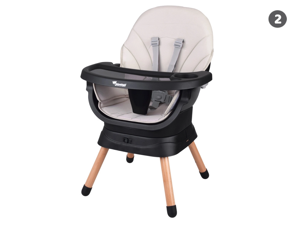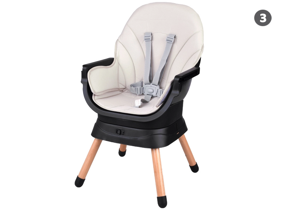 Dieser moderne und ergonomische Hochstuhl vereint Stabilität, Sicherheit und modulares Design. Mit einem einfachen Klick-System lässt er sich an die aktuellen Bedürfnisse Ihres Kindes anpassen – von den ersten Breimahlzeiten bis zum selbstständigen Sitzen und Spielen. Das minimalistische Design fügt sich in jedes Interieur ein.