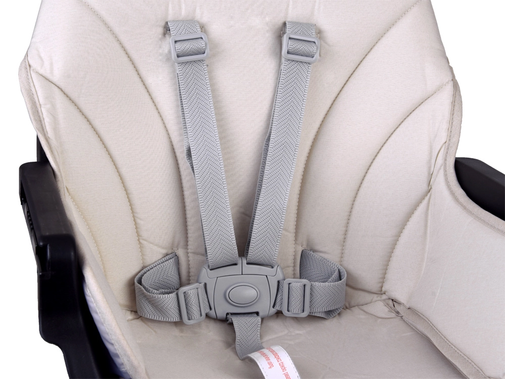 - Fünfpunktgurt, Steg zwischen den Beinen und rutschfeste Endkappen
