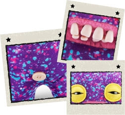 Das Plüschtier FUGGLER Squidge von Spin Master fällt sofort durch sein ungewöhnliches Erscheinungsbild auf. Der lilafarbene Körper ist mit kontrastierenden Flecken in Blau- und Rosatönen verziert, die einen künstlerischen, beinahe abstrakten Effekt erzeugen. Das Highlight ist das komisch-gruselige Gebiss, das dem Spielzeug seinen besonderen Charme und Humor verleiht.