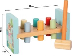 Das Hämmern der bunten Stifte unterstützt einen präzisen Griff, die Hand-Auge-Koordination und die Geduld der Kinder schon ab dem frühen Alter.