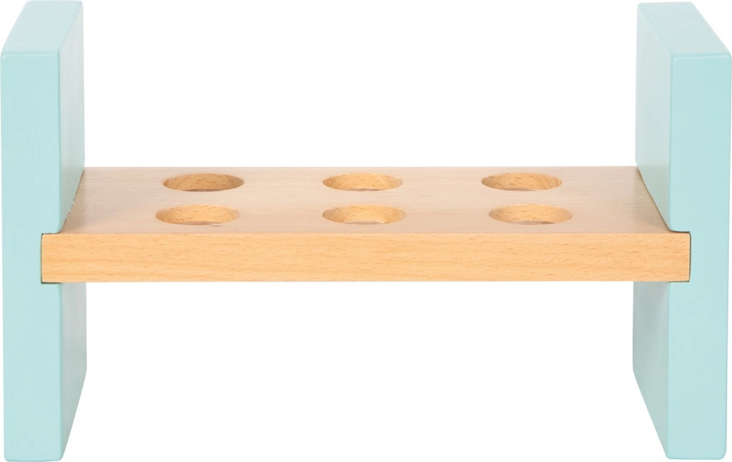 Diese robuste Holz-Klopfbank mit fröhlichen Dschungelmotiven bietet Kindern ab 1 Jahr sicheren und sinnvollen Spielspaß. Gummierte Öffnungen halten die Stifte fest an Ort und Stelle und mildern gleichzeitig die Schläge, wodurch Kinder Griffkraft und Genauigkeit trainieren. Sind alle Stifte eingeschlagen, muss die Bank nur umgedreht werden – und der Spaß beginnt von vorn.