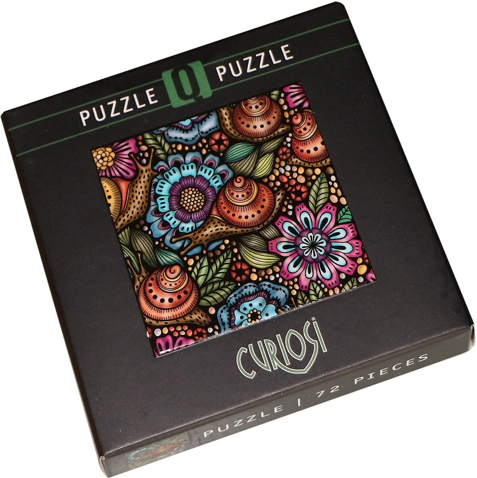 Dieses kompakte quadratische Puzzle mit dem Motiv von Schnecken auf blühenden Blumen begeistert jeden Puzzlefan. Dank der ungewöhnlichen Formen der Puzzleteile bietet es ein noch unterhaltsameres und verspielteres Erlebnis und fördert zugleich Geduld, Konzentration und Feinmotorik.