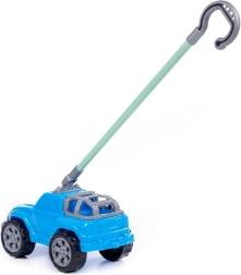Spaßiges Zieh-Auto in Blau mit langem Griff für leichtes Führen. Ideal für die ersten Schritte sowie für Spiele drinnen und draußen. Bietet eine robuste Kunststoffkonstruktion, große Räder für eine sanfte Fahrt und einfaches Greifen auch für kleine Kinderhände.