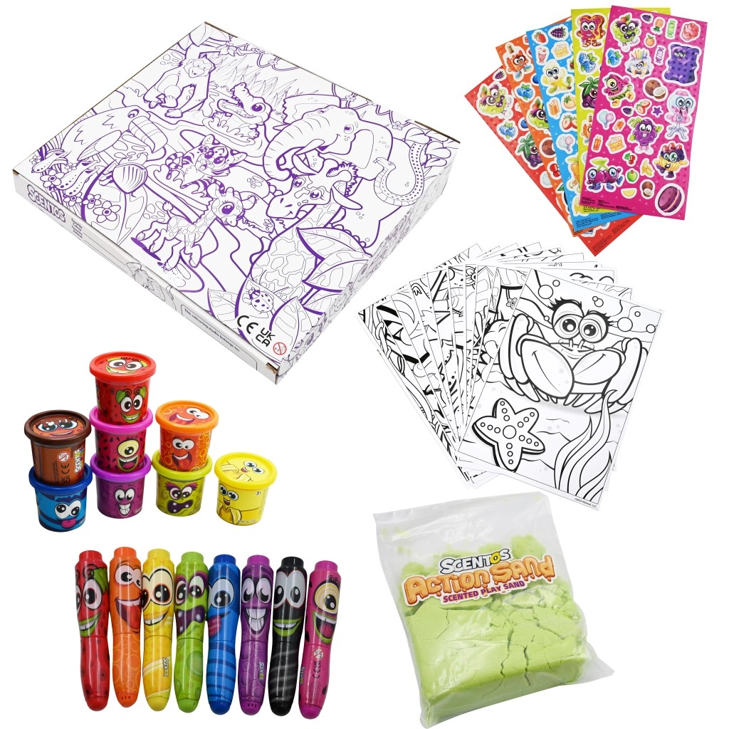Das duftende kreative Reise-Set Scentos Ultimate bringt Kindern alles, was sie zum Basteln brauchen – egal, wo ihr seid. Die praktische, leichte Verpackung enthält Werkzeuge, die Kreativität und motorische Fähigkeiten fördern und zudem herrlich duften – so macht Gestalten noch mehr Spaß.